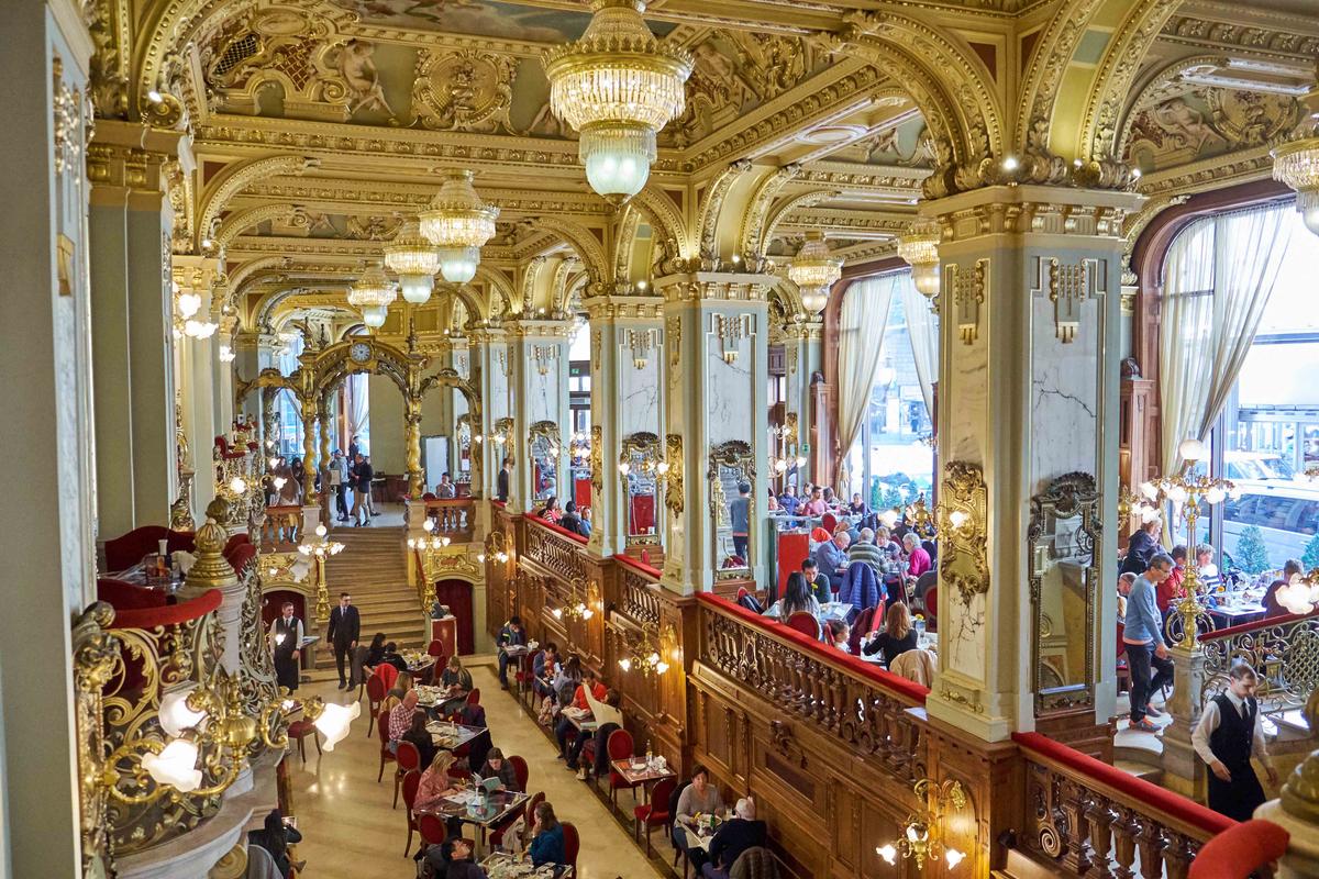 在1900年代初期,它以新艺术风格进行了翻修,这种外观自豪地保持到今天。咖啡馆拥有巨大的红木框架比利时水晶镜、大理石台面桌子和独特的天窗。