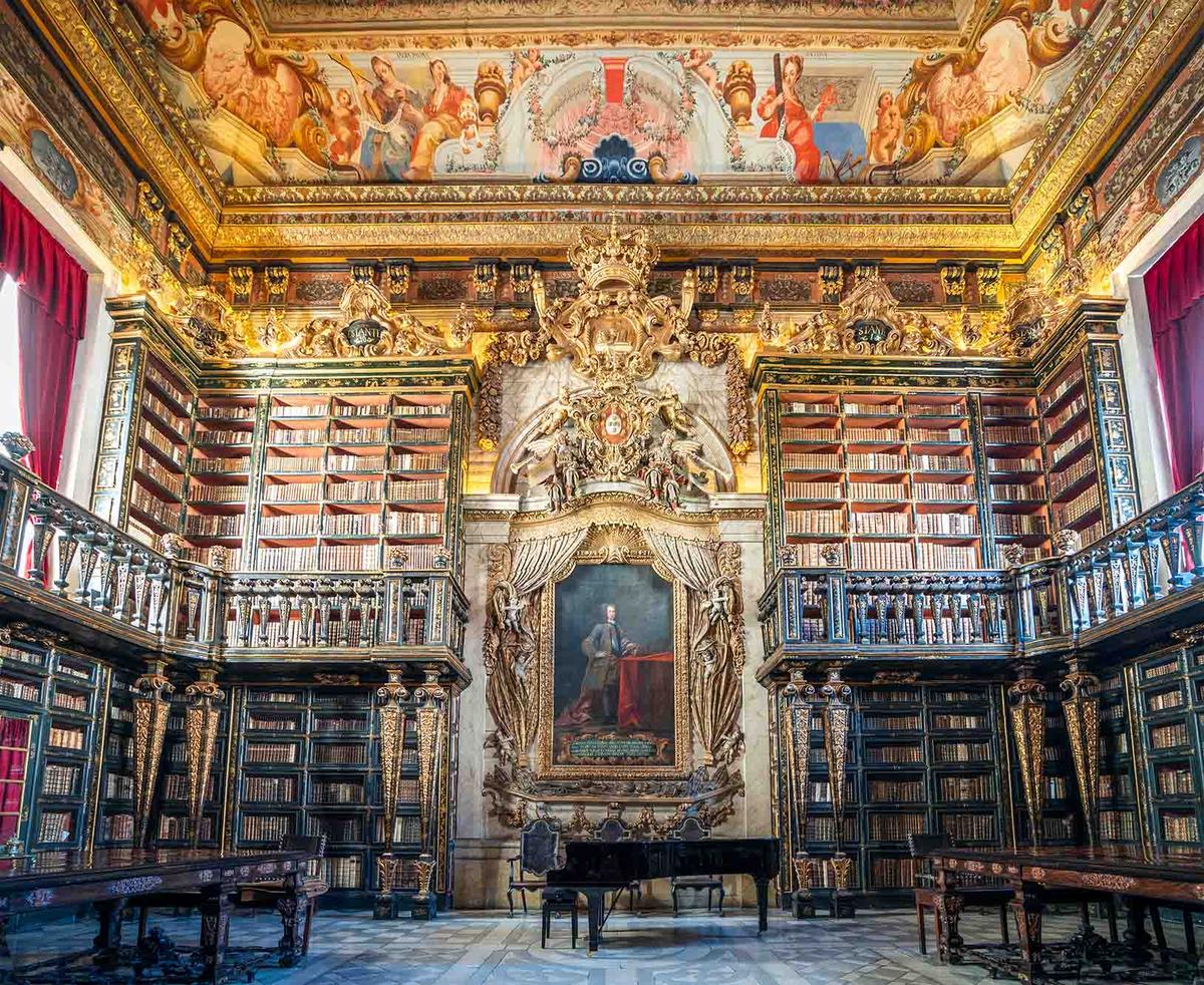 抵达乔安妮娜图书馆的所在地,葡萄牙的科英布拉大学(University of Coimbra)后,游客会惊叹于其内部装饰:从学院宫(the Palace of Schools)的古老鹅卵石广场进入图书馆,所有的装饰都散发着华丽的18世纪气息。游客们将经过图书馆创始人葡萄牙国王若昂五世的雕像。