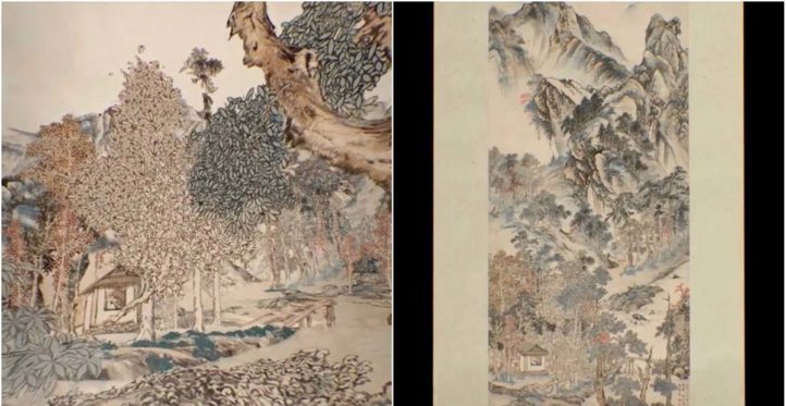 大英博物馆选择制作动画的作品是《秋林读书》(大英博物馆典藏),作者是明代大画家项圣谟(Xiang Shengmo,1597-1658),画中景观为安徽省齐云山,画作创作于1623年。