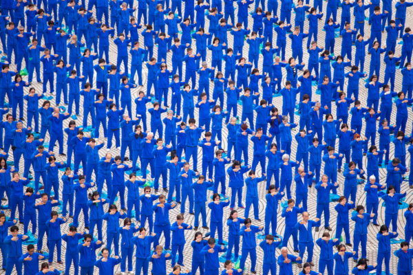 2021年5月1日,台湾部分法轮功学员约五千二百人,齐聚在中正纪念堂的自由广场演炼五套功法。(陈柏州/大纪元)