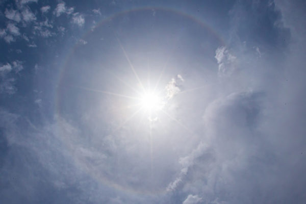 2021年5月1日,台北自由广场天空出现七彩日晕,台湾部分法轮功学员约五千二百人,齐聚自由广场排字恭贺李洪志先生华诞暨法轮大法洪传29周年,排字期间日晕出现并逐渐扩大。(现场法轮功学员拍摄提供)