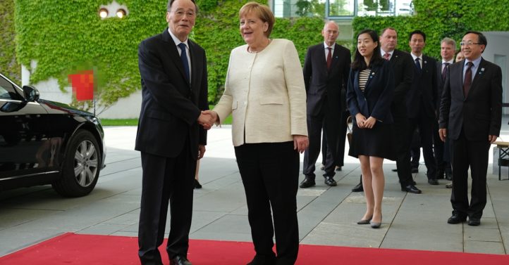 中国国家副主席王岐山5月31日访问了柏林,会晤了德国总统施泰因迈尔和总理默克尔。值得关注的是,就在王岐山会晤默克尔的同一天,美国国务卿蓬佩奥也在柏林访问,会晤了默克尔及外长马斯。