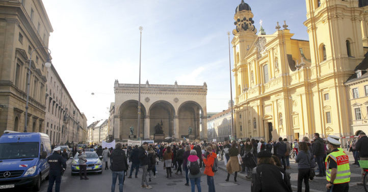 游行队伍回到奥迪安广场之后,集会继续进行,有不少人高喊让巴伐利亚州长索德(Markus Söder)下台。下午两点活动结束。
