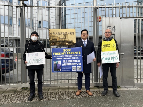 在国际人权日之际,法轮功学员丁乐斌再次来到柏林中共使馆前表达抗议。他明确向中共提出三个诉求:第一,立即释放他的父亲丁元德和所有被关押的法轮功学员。第二,立即停止强摘法轮功学员人体器官。第三,立即停止对海外法轮功学员的跨国镇压和间谍活动。