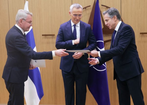4月4日,芬兰外交部长佩卡‧哈维斯托(Pekka Haavisto)在布鲁塞尔北约总部向美国国务卿安东尼‧布林肯递交了一份正式文件,从而完成了加入北约程序。