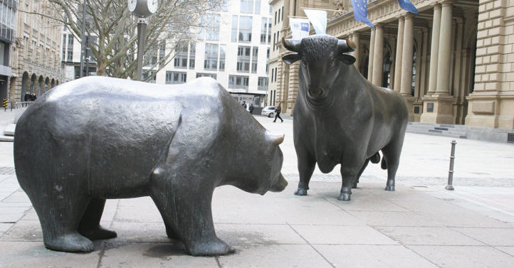 最令游客莞尔和津津乐道的当属交易所前那一对标志性的“牛”、“熊”黑铜雕像了。据说,人们把股票市场的起伏形容成“牛市”和“熊市”即来源于此。早在一百多年前,法兰克福证券交易所就把这对公牛和黑熊的铜像摆在了门口,它们彼此对望、作势格斗,又势均力敌、相互牵制。公牛攻击敌人时,会用牛角尽力往上顶,而黑熊则刚好相反,是用熊掌猛烈往下拍,两种不同的姿态正好代表了股价上涨或下跌对立消长的局势。