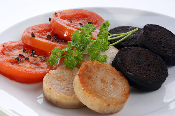传统爱尔兰早餐中的黑、白布丁其实是一种香肠切片。(Shutterstock)